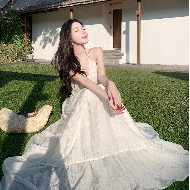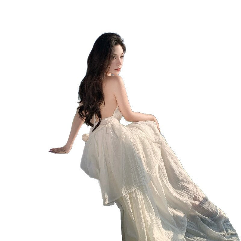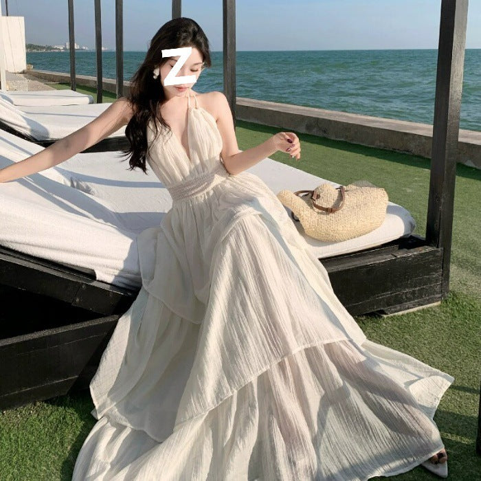 Deep V New Patchwork Slim Fit Slimming Spaghetti Straps Tiered-Ruffle Long Dress